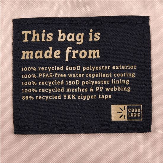 • Tento batoh je vyrobený zo 100% recyklovaného polyesteru 600D, polyesterovej vnútorné výstelky 150D, sieťoviny, PP pásikov a z 86% recyklovanej tkaniny zipsu YKK. Vodoodpudivá povrchová úprava taktiež neobsahuje PFC, chemické látky, ktoré sú škodlivé pre životné prostredie.