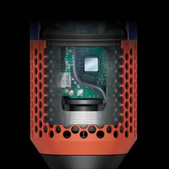 Digitálne riadený motor V srdci prístroja sa nachádza výkonný digitálne riadený motor Dyson, ktorý sa otáča rýchlosťou až 110 000 otáčok za minútu. Táto mimoriadna rýchlosť vytvára silný prúd vzduchu a dostatočný tlak na to, aby mohol vzniknúť Coanda efekt – prirodzené priľnutie vlasov k povrchu nástavca bez potreby extrémneho tepla.