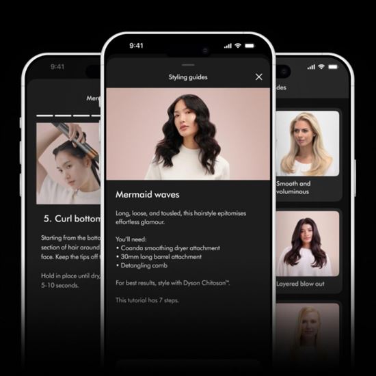 Aplikácia MyDyson™ vám na základe vášho osobného profilu vlasov ponúka inšpiráciu presne zodpovedajúcu tomu, čo vašim vlasom najviac vyhovuje. Môžete objavovať nové štýly, ktoré lichotia vášmu typu vlasov, alebo využiť profesionálne tipy a odporúčania vytvorené priamo odborníkmi Dyson. Či už chcete vytvoriť jemné vlny, uhladený vzhľad alebo výraznejší objem, aplikácia vám poskytne návody krok za krokom aj odporúčania nástavcov tak, aby bol výsledok vždy perfektný a ľahko opakovateľný.