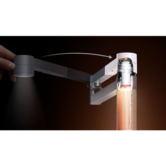 Keď sa LED diódy prehrievajú, menia farbu. Dyson používa technológiu satelitného chladenia: voda vnútri vákuovo utesnenej medenej trubice odvádza teplo z LED diód.