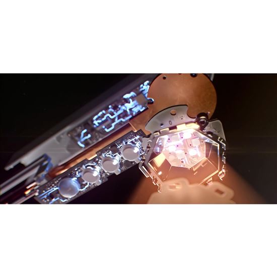 Keď sa LED diódy prehrievajú, menia farbu. Dyson používa technológiu satelitného chladenia: voda vnútri vákuovo utesnenej medenej trubice odvádza teplo z LED diód.