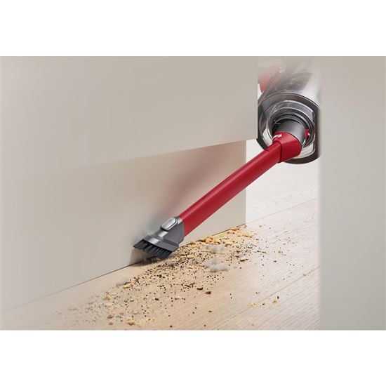 - Otáčanie o 22° pre upratovanie úzkych priestor: Disponuje plochým profilom, ktorý uľahčuje vysávanie v stiesnených priestoroch. Kefa pomáha v prípade potreby uvoľniť odolné nečistoty.