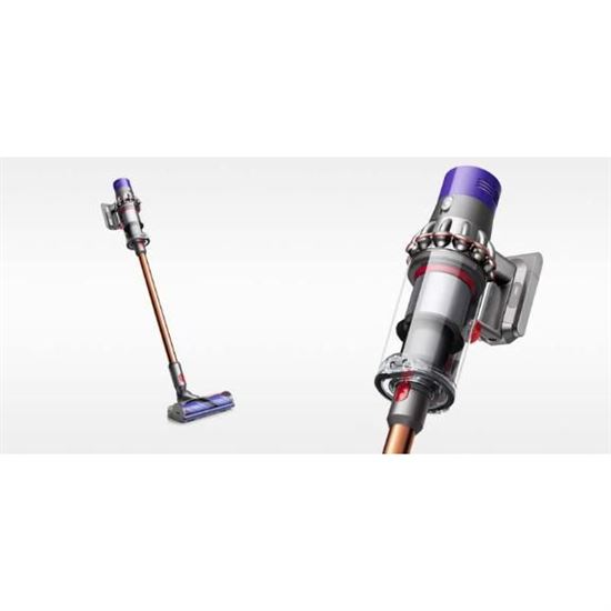 Tzv. "Point and shoot" usporiadanie motoru, odpadovej nádoby a cyklón umožňuje priechod vzduchu z podlahovej hubice do cyklón v priamej línii. Toto prevedenie v kombinácii s výkonnejším digitálne radeným motorom Dyson V10 zvyšuje v porovnaní s vysávačom Dyson V8 sací výkon o 20 %.