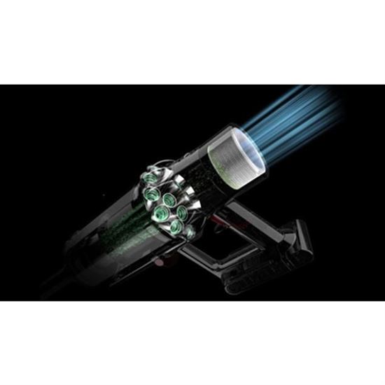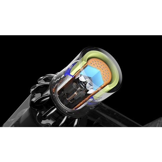 14 cyklónov separuje nečistoty pomocou odstredivej sily presahujúcej 79 000 G. Vďaka vzduchotesnému vyhotoveniu cyklónového bloku a tlakovému gumovému tesneniu okolo zdokonaleného filtra je celý systém úplne vzduchotesný – zabraňuje tak úniku prachu, alergénov a baktérií späť do okolitého vzduchu. Vysávač zachytáva 99,97 % prachových častíc už od veľkosti 0,3 mikrónu a vypúšťa vzduch, ktorý je čistejší než ten, ktorý dýchate. Filtre pred a za motorom sú pre jednoduchšiu údržbu integrované do jednej spoločnej jednotky.