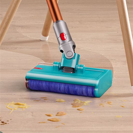 Umýva tvrdé podlahy čistou vodou od začiatku až do konca. Motorizovaný mokrý rotačný valec zachytáva tekutiny, nečistoty a odolné škvrny, ktoré sú pri každom otočení valca priebežne odsávané. Odstraňuje rozliate krmivo a odtlačky labiek domácich miláčikov z kuchýň a frekventovaných vstupných priestorov. Jednoducho manévruje okolo prekážok a rýchlo zbiera rozliatu detskú stravu a nápoje. Poradí si so zubnou pastou, odolnými škvrnami aj zaschnutými tekutinami z kúpeľňových podláh.