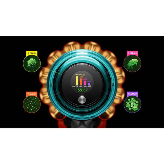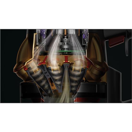 Root Cyclone™ technológia Root Cyclone™ technológia využíva 14 cyklón vytvárajúcich odstredivé sily až 100 000 G. Tieto extrémne sily účinne oddeľujú prach a nečistoty od prúdiaceho vzduchu a zhromažďujú ich do zberného zásobníka, bez toho aby dochádzalo k upchávaniu filtra. Výsledkom je stály sací výkon počas celej doby upratovania – žiadne kompromisy. Vďaka kompletne utesnenému filtračnému systému Dyson sú zachytené až 99,99 % mikroskopických častíc s veľkosťou len 0,3 mikróna, vrátane prachu, alergénov, spór plesní či roztočov. Vzduch, ktorý vysávač vypúšťa späť do miestnosti, je tak čistejší než vzduch, ktorý dýchate, čo je ideálne pre alergikov a domácnosti so zvieratami.