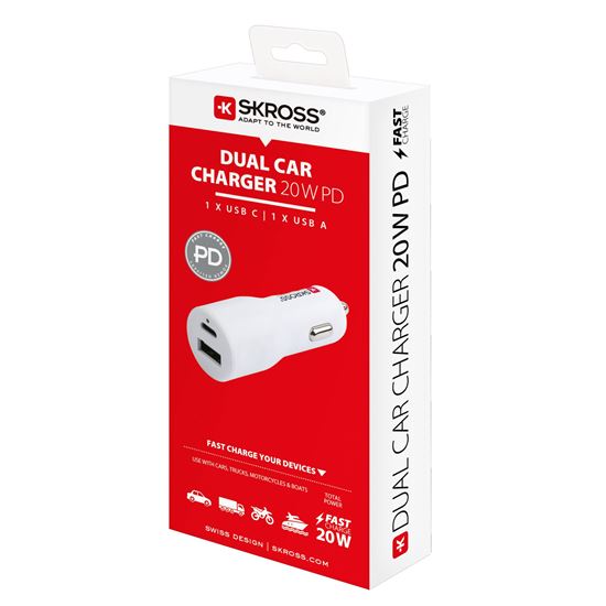 SKROSS A+C USB nabíjací autoadaptér Dual Car Charger 20W PD | SOLIGHT