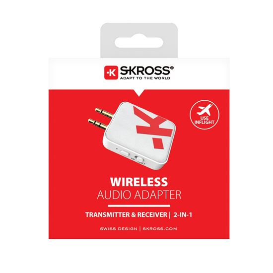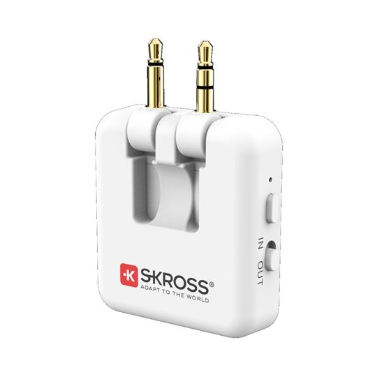 Koniec palubným slúchadlám pri cestách lietadlom. Pripojte sa bezdrôtovo k vašim osobným slúchadlám a dajte zbohom prekážajúcim káblom. SKROSS Wireless Audio Adapter pohodlne pripojí vaše bezdrôtové slúchadlá aj k televízorom, počítačom, autám, prenosným herným zariadeniam, cvičebným strojom a ďalším zariadeniam. Obojsmerná prevádzka: umožňuje zvuk bezdrôtovo prijímať do slúchadiel alebo aj vysielať zo zdroja do reproduktorov pomocou Bluetooth pripojenia. Poskytuje až 20 hodín výdrže batérie s nabíjaním cez USB-C. Individuálne sklopné dva 3,5 mm mini jack konektory zabezpečujú kompatibilitu s rôznymi zariadeniami s jedným alebo dvoma vstupmi.