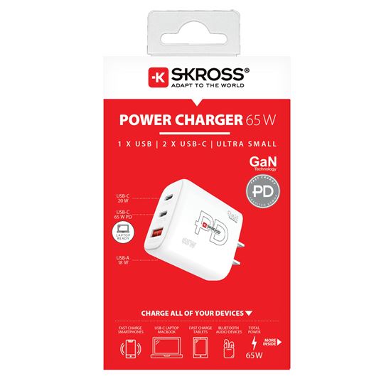 SKROSS USB A+C nabíjací adaptér Power Charger 65W GaN US, Power Delivery, typ A