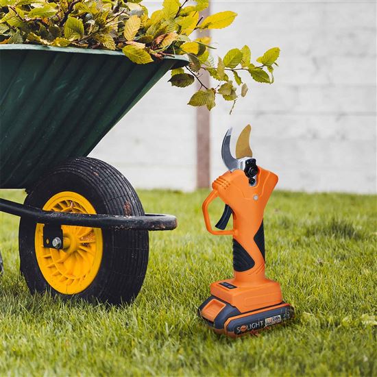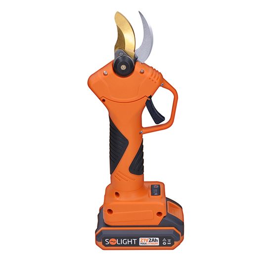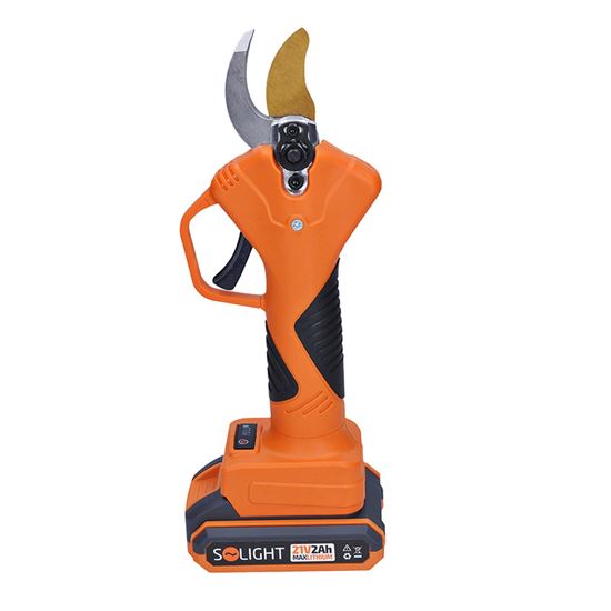 Akumulátorové nožnice Akumulátorové nožnice s bezuhlíkovým motorom pre vysoký výkon a dlhú životnosť. Ideálne na strihanie konárov s hrúbkou do 30 mm. Obsahuje štyri nastaviteľné režimy otvárania čeľustí na flexibilné použitie. Hmotnosť 1,2 kg s batériou, protišmykový povrch a elektronická poistka proti náhodnému spusteniu zabezpečujú pohodlnú a bezpečnú prácu. Súčasťou balenia je: plastový kufor, 1x 2Ah akumulátor, nabíjačka, návod a náradie. Až 500 rezov na jedno nabitie, čas nabíjania cca 150 minút. Napájanie 21 V 2Ah Li-Ion akumulátorom, rozmery 30 x 12 x 8 cm.