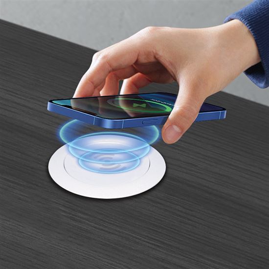 Matne biela nabíjačka s minimalistickým prevedením sa ľahko začlení do každého svetlého interiéru a bieleho nábytku. Vďaka zabudovaniu do dosky stola alebo pracovnej plochy zostáva pracovný priestor čistý, bez rušivých prvkov. Ideálne riešenie pre domácnosti, kancelárie aj verejné priestory.