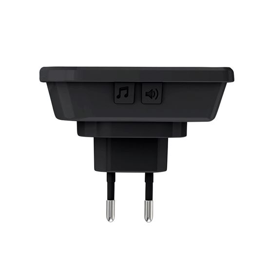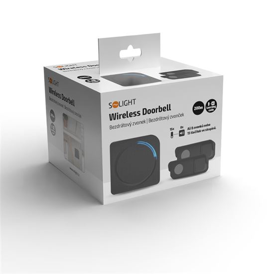 Spoľahlivý zvonček s jednoduchou inštaláciou Bezdrôtový zvonček stačí zapojiť do bežnej zásuvky, nie je potrebné žiadne vŕtanie ani ťahanie káblov. Dosah až 200 metrov v otvorenom priestore zaručuje bezproblémové fungovanie aj vo väčších domoch, kanceláriách alebo prevádzkach. Oba vysielače sú spárované k zvončeku a zvyšujú variabilitu použitia, napr. ku vchodovým dverám a na bránku. Sú na batérie a ľahko sa upevnia na stenu alebo dvere. Strieška vysielača zvyšuje odolnosť proti dažďu a zároveň chráni pred priamym slnečným svetlom, to predlžuje jeho životnosť.