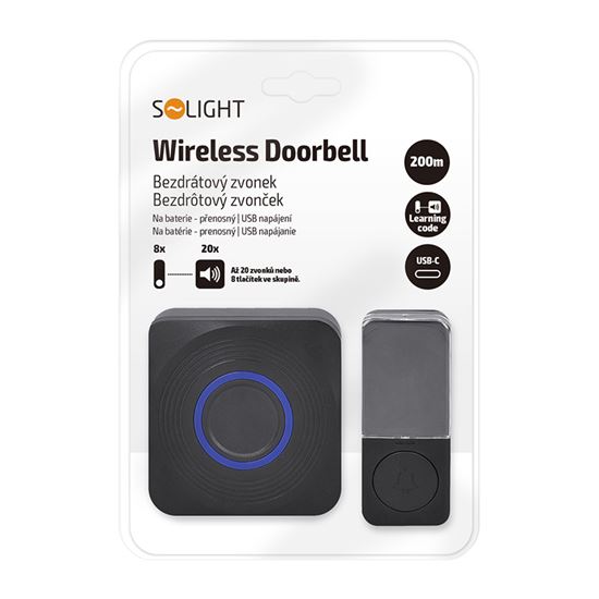 Bezdrôtový zvonček ponúka slobodu pohybu aj pohodlie domáceho použitia. Napájanie je možné batériami alebo cez USB-C kábel. Ten využijete, keď zvonček zostáva vo vnútri - vyberiete batérie a napájanie prebieha cez USB. V prípade potreby ho opäť môžete sprevádzkovať na batérie a vziať so sebou, napríklad na záhradu, do dielne alebo skladu. Dosah až 200 metrov v otvorenom priestore zaisťuje spoľahlivú prevádzku aj na väčšie vzdialenosti. Tlačidlo je napájané batériou a ľahko sa upevňuje na stenu alebo dvere.