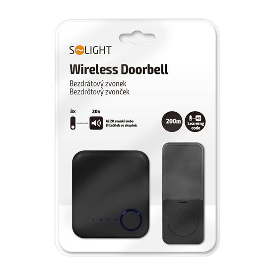 Solight bezdrôtový zvonček, do zásuvky, 200m, čierny, learning code | SOLIGHT