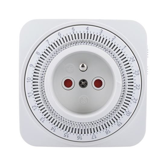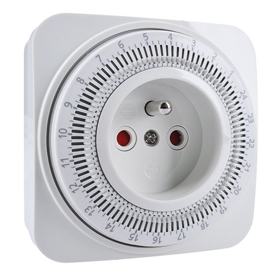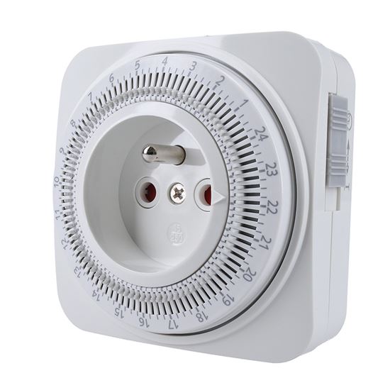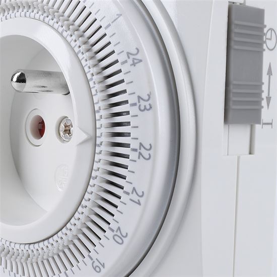 Časový spínač Mechanický časový spínač s rozsahom 24 hodín umožňuje nastaviť minimálny čas 15 minút. Je vybavený vypínačom, detskou poistkou a pracuje s napätím 230 V/16 A, 50 Hz.