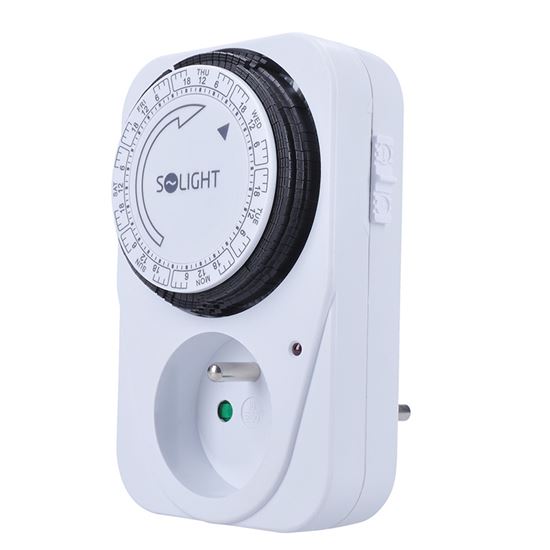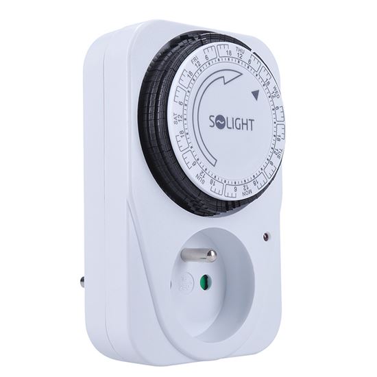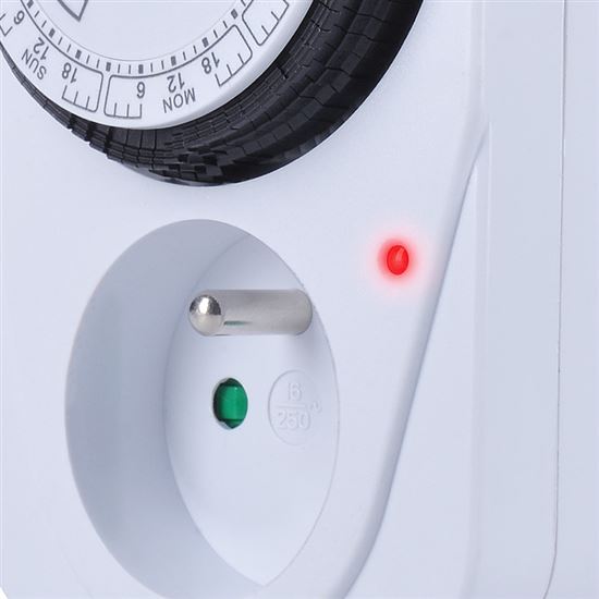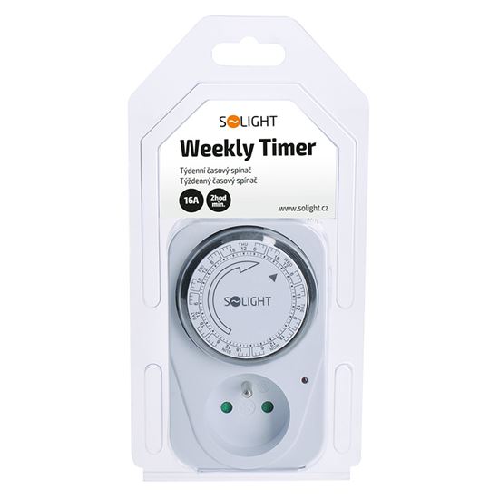 Časový spínač Mechanický týždenný časový spínač s minimálnym časovým úsekom 2 hodiny. Je vybavený mechanickým spínačom a detskou poistkou. Napájanie 230 V/16 A, 50 Hz. Vhodný na plánované ovládanie spotrebičov, vykurovania alebo osvetlenia.