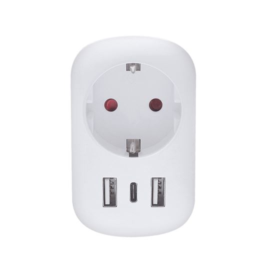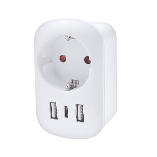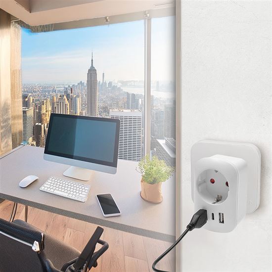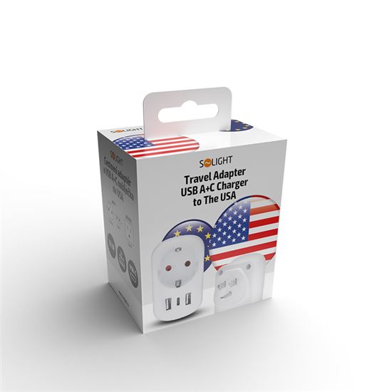 Spoľahlivé pripojenie na cestách Adaptér umožňuje bezpečné použitie európskych zariadení v zásuvkách Spojených štátov a krajinách s USA štandardom typ B. Pripojí uzemnené aj neuzemnené vidlice prívodných káblov, bez problémov zapojíte všetko od notebookov až po fény. Vstavaná USB nabíjačka nabíja telefón či tablet bez nutnosti odpájať prívodnú šnúru z hlavnej zásuvky.
