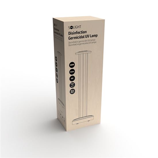 Dezinfekčná germicídna UV lampa 100 WTáto prenosná germicídna lampa s výkonom 100 W dezinfikuje priestory do 80 m2 pomocou UV-C žiarenia a ozónu. Inteligentný snímač lampu automaticky vypne, keď sa v nej objavia ľudia, a po ich odchode ju opäť zapne. Odstraňuje vírusy, baktérie, plesne a roztoče, pričom je 3000-krát rýchlejšia ako chlór a 25-krát účinnejšia ako kyselina chlórová. Časovač možno nastaviť na 15/30/60 minút. Lampa je vybavená diaľkovým ovládaním s dosahom 15 m, má životnosť až 5 000 hodín a silikónovú trubicu s ABS konštrukciou. Napájanie 230 V/50 Hz, dĺžka kábla 1,2 m. Hmotnosť 1,3 kg, čierna farba.
