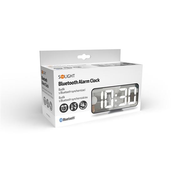 Digitále hodiny so synchronizáciou cez BluetoothHodiny so synchronizáciou cez Bluetooth a teplomerom. Digitálne hodiny automaticky synchronizujú čas prostredníctvom Bluetooth bez potreby aplikácie. Displej LED umožňuje prepínať medzi časom a teplotou a meria teplotu v rozsahu 0 °C - 50 °C (32 °F - 122 °F). Tri úrovne jasu a automatická regulácia jasu v nočnom režime zabezpečujú pohodlné používanie aj v noci. Denný budík s vypínačom ponúka jednoduché nastavenie. Napájanie 3× AAA batériami alebo cez DC 5V.