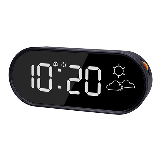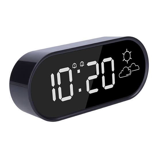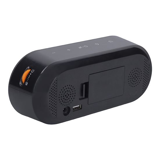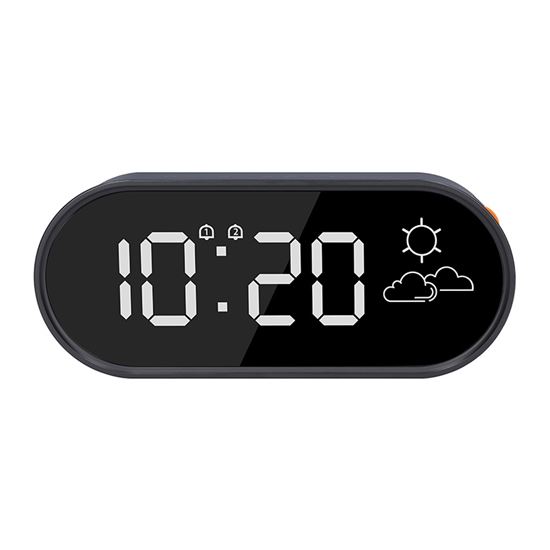 Hodiny s predpoveďou počasia s budíkom a nabíjaním cez USB. Tyto moderné digitálne hodiny s funkciou predpovede počasia na základe zmien atmosférického tlaku kombinuje štýlový dizajn s dotykovým ovládaním. Displej umožňuje zobrazenie času alebo striedanie času a teploty, ktoré možno prepínať medzi °C/°F. Dvojitý budík s funkciou odloženia budenia zabezpečuje pohodlné budenie. Jas displeja možno nastaviť pomocou otočného voliča. Praktický port USB umožňuje nabíjanie iných zariadení.