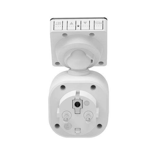 Digitálny časový spínačTento časovač je vybavený obráteným displejom LCD s veľkými znakmi a uhlopriečkou 7 cm, ktorý možno pre lepšiu čitateľnosť otáčať. Ponúka 8 denných spínacích cyklov a 15 skupín na nastavenie rôznych dní. Má detskú poistku, pamäť na ukladanie nastavených hodnôt a možnosť vypnutia displeja. Presnosť nastavenia je 1 minúta, prevádzková teplota -10 °C až +40 °C. Napájanie 230 V/16 A (3680 W).