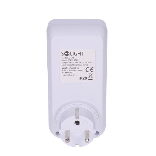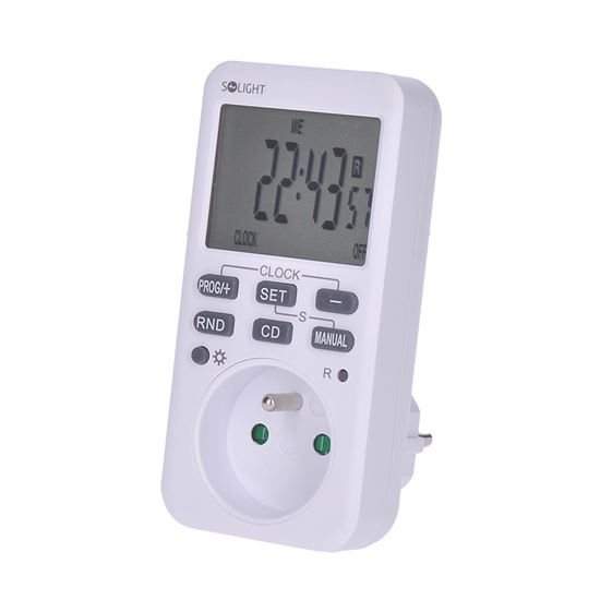 Digitálny týždenný časový spínačTento digitálny časový spínač je vybavený veľkým podsvieteným displejom LCD a indikátorom LED zapnutia. Ponúka automatický a manuálny režim, 10 spínacích cyklov s minútovým rozlíšením a 16 kombinácií dní. Obsahuje funkciu letného času, odpočítavanie až do 99 hodín, 59 minút a 59 sekúnd a možnosť náhodného prepínania medzi 6:00 a 18:00 na 10-31 minút. Má zabudovanú batériu s výdržou až 100 hodín na zachovanie nastavení, detské poistky a pracuje na 230 V/16 A, 3600 W. Prevádzková teplota sa pohybuje od -10 °C do +40 °C.