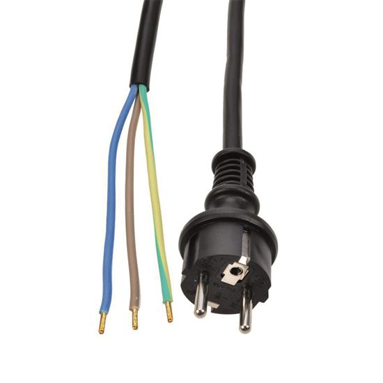 Prívodný gumový kábel s voľnými vodičmi umožňuje pripojenie priamo do spotrebiča alebo k pohyblivej zásuvke. Vodiče sú zo splietaných medených drôtikov s medenými krimpovanými koncovkami, uľahčujúce montáž do svorkovnice. Určené pre vonkajšie aj vnútorné použitie, stupeň krytia IP44.