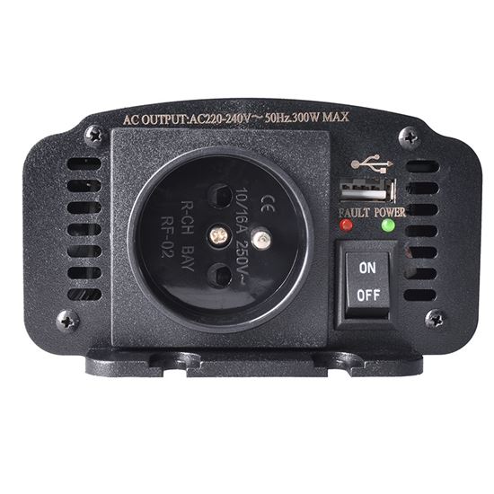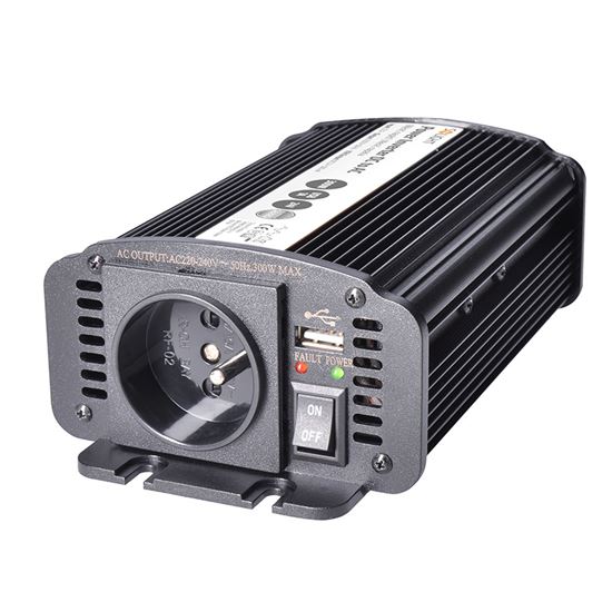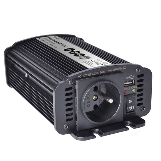 Tento výkonný menič napätia premieňa 12 V jednosmerného prúdu na 230 V striedavého prúdu s maximálnym trvalým výkonom 300 W (špičkový až 600 W). Poskytuje modifikovanú sínusovú ochranu proti prehriatiu, prepätiu, skratu a preťaženiu. Má výstup USB 2.0 (500 mA) na nabíjanie zariadení. Ideálne na použitie v autách, karavanoch alebo na cestách. Obsahuje napájací kábel so svorkami.
