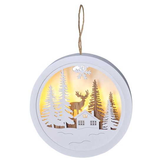Solight LED dekorácie závesná, les a jeleň, biela a hnedá, 2x AAA | SOLIGHT