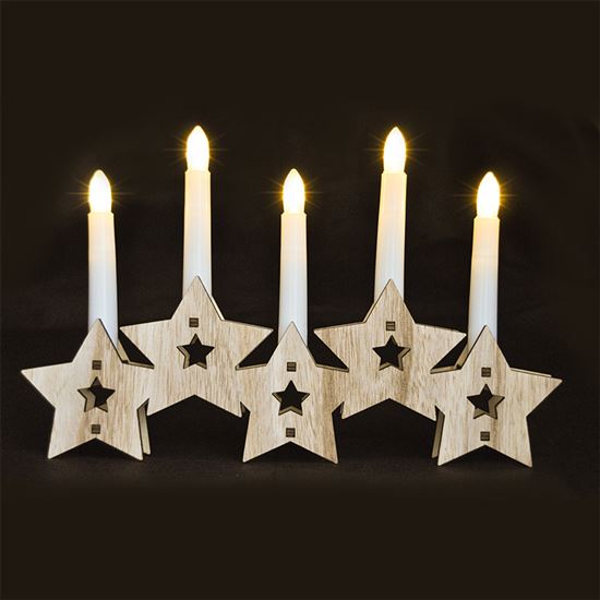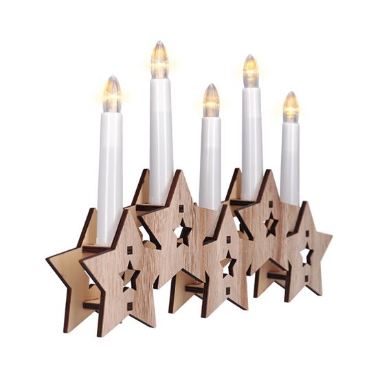 LED drevený svietnik pre útulnú atmosféru domova LED drevený svietnik s dekorom hviezd je ideálnou voľbou na vytvorenie príjemnej a slávnostnej atmosféry v interiéri. Vďaka piatim sviečkam s teplým bielym svetlom navodí pocit pohody a pokoja, či už ho umiestnite na stôl, parapet alebo poličku. Prírodné drevené prevedenie s jemným hviezdnym motívom skvele zapadne do moderného aj tradičného interiéru a stane sa štýlovým doplnkom nielen počas vianočných sviatkov.