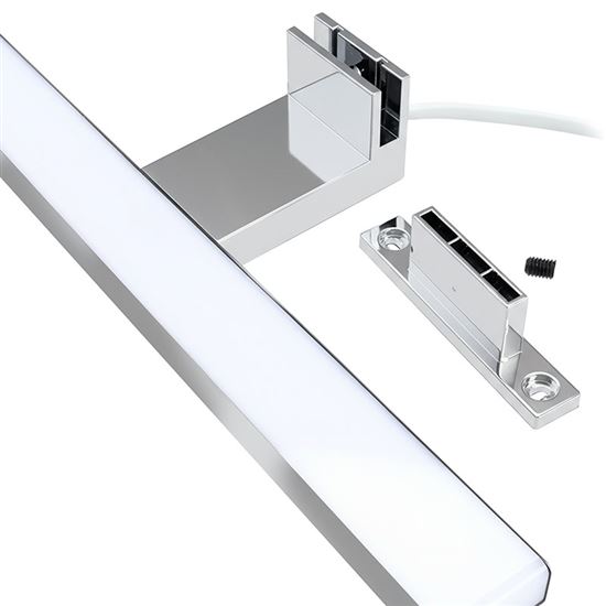 LED kúpeľňové osvetlenie nad zrkadlo pre dokonalé osvetlenie priestoru Moderné LED kúpeľňové osvetlenie je navrhnuté špeciálne na umiestnenie nad zrkadlo, kde poskytuje rovnomerné a príjemné svetlo s neutrálnou bielou farbou (4000 K). Vďaka svetelnému toku 780 lm a uhlu svietenia 120° zabezpečí dostatok svetla na každodennú hygienu aj líčenie. Osvetlenie je vyrobené z kvalitného hliníka a PC, čo zaručuje dlhú životnosť až 20 000 hodín a odolnosť voči striekajúcej vode vďaka krytiu IP44. Chrómové prevedenie dodáva elegantný vzhľad, ktorý skvele zapadne do každej modernej kúpeľne.