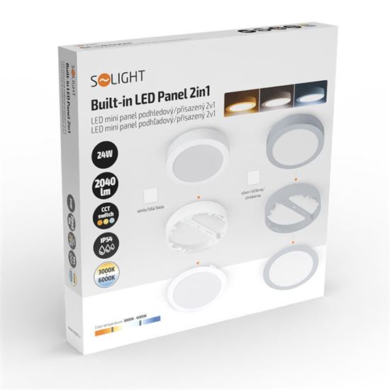 Variabilné nastavenie svetla a dlhá životnosť Špeciálny LED zdroj s prepínačom umožňuje nastaviť teplotu svetla podľa aktuálnej potreby – od teplej (3000 K), cez neutrálnu (4000 K), až po studenú bielu (6000 K). S výkonom 24 W a svetelným tokom 2040 lm poskytuje dostatok svetla pre každodenné činnosti. Široký uhol svietenia 160° zabezpečí rovnomerné osvetlenie priestoru, zatiaľ čo vysoký index podania farieb Ra >80 prispieva k vernej reprodukcii farieb. Panel má dlhú životnosť až 20 000 hodín a jeho inštalácia je jednoduchá vďaka priloženému napájaciemu trafu a variabilnému otvoru pre podhľadovú montáž (180–290 mm).