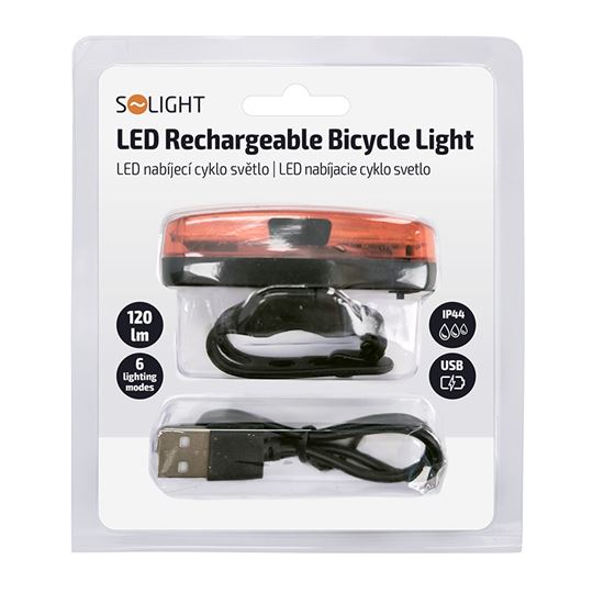 Solight LED nabíjací zadné cyklo svetlo, 3W COB, nabíjací, Li-Ion | SOLIGHT