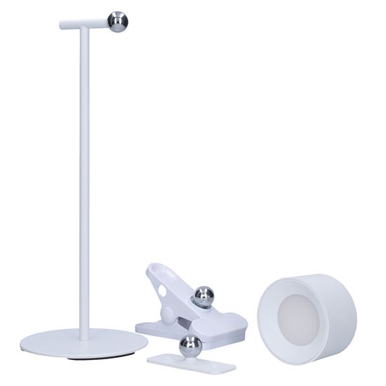 Táto lampička vyniká svojou univerzálnosťou – možno ju umiestniť na stolový stojan, pripevniť pomocou klipu alebo zavesiť na nástennú konzolu, pričom všetky varianty sú súčasťou balenia. Vstavaná Li-Ion batéria s kapacitou 2000 mAh umožňuje až 3,5 hodiny prevádzky na plný výkon, lampičku však môžete používať aj pri napájaní zo siete cez USB kábel (dĺžka 150 cm). Kompaktné rozmery (cca 320 x 120 x 140 mm) a nízka hmotnosť z nej robia ideálneho spoločníka nielen do domácnosti, ale aj na cesty. Elegantné biele prevedenie a kvalitný materiál ABS podčiarkujú moderný dizajn a dlhú životnosť produktu.