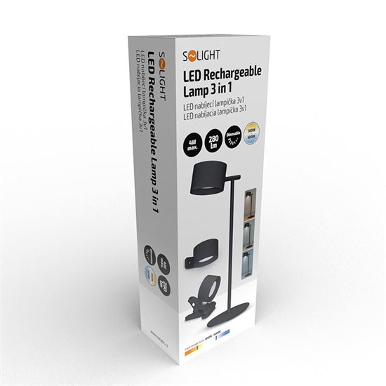 Táto moderná LED lampička ponúka maximálnu variabilitu použitia vďaka premyslenému 3v1 systému – ľahko ju umiestnite na stolový stojan, pripevníte pomocou klipu alebo zavesíte na nástennú konzolu, pričom všetky tieto možnosti sú súčasťou balenia. Lampička je vybavená vstavanou Li-Ion batériou, ktorá umožňuje pohodlné prenášanie a prevádzku bez nutnosti pripojenia k sieti, alebo ju môžete napájať priamo cez USB kábel. Vďaka kompaktným rozmerom a elegantnému čiernemu prevedeniu z odolného ABS materiálu sa hodí do každého interiéru, či už ju využijete na pracovnom stole, v spálni alebo napríklad pri čítaní na pohovke.