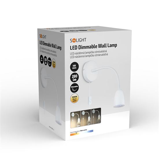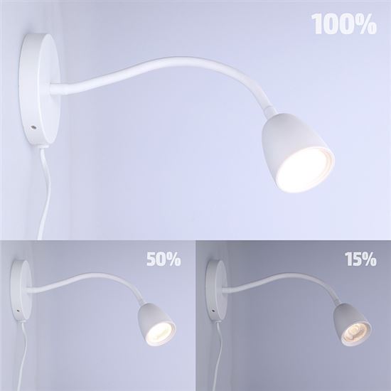 Úsporná prevádzka a príjemné svetlo v elegantnom prevedení Lampička ponúka maximálny príkon 4 W a svetelný tok až 280 lm, čo zaisťuje dostatok svetla na čítanie, prácu aj relaxáciu. Teplota svetla 3000 K vytvára príjemnú teplú bielu atmosféru, zatiaľ čo široký uhol svietenia 120° rovnomerne osvetlí celý priestor. Vďaka indexu podania farieb CRI > 80 sú farby prirodzené a verné. Praktická dĺžka prívodnej šnúry 120 cm a napájacieho kábla 130 cm umožňuje jednoduché umiestnenie lampičky podľa potreby. Elegantné biele prevedenie a kompaktné rozmery 120 x 300 x 75 mm z nej robia štýlový doplnok do každého interiéru.