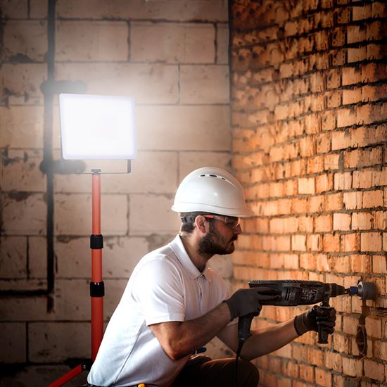 Tento výkonný stavebný LED reflektor s príkonom 100 W a svetelným tokom 9000 lm je ideálnou voľbou pre profesionálne aj domáce použitie na stavbách, v dielňach alebo pri vonkajších prácach. Vďaka neutrálnej bielej farbe svetla (4000 K) poskytuje prirodzené osvetlenie, ktoré neunavuje oči a zabezpečuje výbornú viditeľnosť detailov. Reflektor je vybavený vysokým teleskopickým stojanom, ktorý umožňuje jednoduché nastavenie výšky v rozmedzí 800–1620 mm, takže svetlo vždy nasmerujete presne tam, kde je potrebné. Robustná konštrukcia z tlakovo liateho hliníka v kombinácii s čiernou a oranžovou farbou zabezpečuje dlhú životnosť a odolnosť aj v náročných podmienkach.