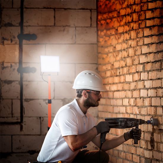 Tento výkonný pracovný LED reflektor s príkonom 50 W a svetelným tokom 4500 lm je ideálnou voľbou na osvetlenie stavenísk, dielní alebo vonkajších priestorov. Vďaka neutrálnej bielej farbe svetla (4000 K) poskytuje prirodzené a príjemné osvetlenie, ktoré neunavuje oči a zabezpečuje dobrú viditeľnosť detailov. Reflektor je vybavený vysokým teleskopickým stojanom, ktorý umožňuje jednoduché nastavenie výšky v rozmedzí 800–1620 mm, takže svetlo vždy nasmerujete presne tam, kde je potrebné. Robustná konštrukcia z tlakovo liateho hliníka v kombinácii s čiernou a oranžovou farbou zabezpečuje dlhú životnosť a odolnosť aj v náročných podmienkach.