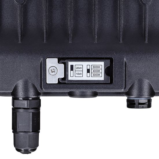 LED reflektor TOP pre flexibilné vonkajšie osvetlenie Výkonný LED reflektor radu TOP je ideálnou voľbou pre efektívne osvetlenie vonkajších aj vnútorných priestorov. Vďaka možnosti nastavenia výkonu na 100 % alebo 50 % (20 W a 2600 lm / 10 W a 1300 lm) ľahko prispôsobíte intenzitu svetla aktuálnym potrebám. Reflektor ponúka aj voľbu teploty svetla v rozsahu 3000 K, 4000 K alebo 5000 K, čo umožňuje zvoliť teplú, neutrálnu alebo studenú bielu podľa konkrétnej situácie. Praktický vstavaný prepínač zabezpečuje jednoduché ovládanie priamo na tele svietidla, zatiaľ čo svetelný kužeľ 120° poskytuje široké pokrytie priestoru.