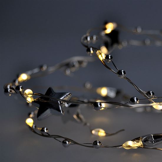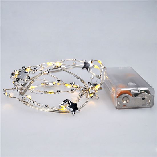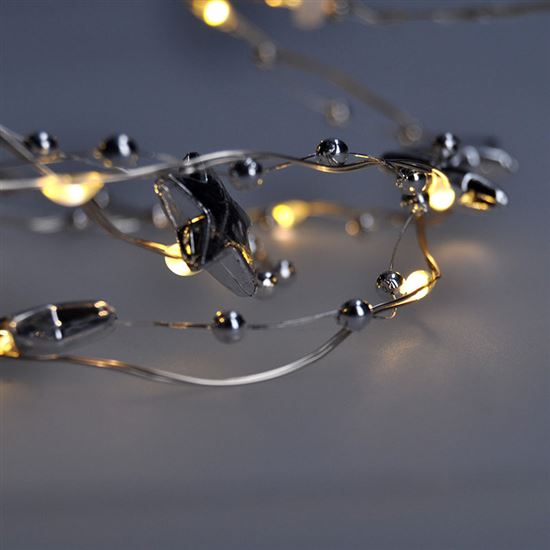 LED reťaz s dekoráciami pre útulné osvetlenie interiéru LED reťaz s dekoráciami je ideálnou voľbou na vytvorenie príjemnej atmosféry v každom interiéri. Vďaka teplému bielemu svetlu s jemným žltým nádychom navodí pocit pohody a útulnosti, či už ju použijete pri slávnostných príležitostiach, alebo ako každodennú dekoráciu. Reťaz je dlhá 1 m a obsahuje 20 LED diód, ktoré sú rozmiestnené tak, aby rovnomerne osvetlili priestor a zvýraznili dekoratívne prvky. Strieborná farba reťaze pôsobí elegantne a ľahko ju zladíte s rôznymi štýlmi zariadenia.