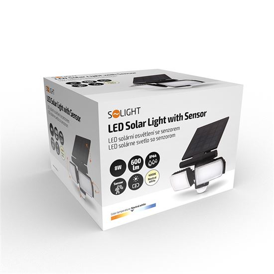 Praktické využitie a jednoduchá inštalácia Vďaka príkonu 8 W a svetelnému toku 600 lm poskytuje osvetlenie dostatok svetla v neutrálnej bielej farbe (4000 K), čo je ideálne napríklad pre parkovacie státie, pergoly, kôlne, zadné časti domu alebo vstupné bránky. Solárny panel nabije vstavanú Li-Ion batériu (3,7 V, 2000 mAh) za cca 8 hodín, pričom čistý čas svietenia dosahuje až 1 hodinu. Ovládanie je jednoduché pomocou vypínača s režimami vypnuté (OFF) a automatické spínanie (AUTO). Čierne prevedenie zaisťuje nenápadný vzhľad a jednoduché začlenenie do akéhokoľvek exteriéru.