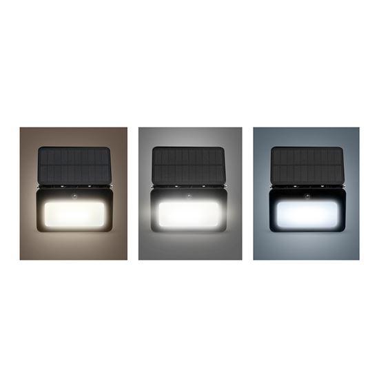 Možnosti nastavenia a prevádzkové režimy LED svetla Osvetlenie umožňuje nastaviť teplotu svetla podľa potreby – na výber je teplá biela 3000 K, neutrálna biela 4000 K alebo studená biela 6500 K, čo zabezpečuje príjemné a prispôsobiteľné osvetlenie pre rôzne situácie. Pomocou prepínača je možné zvoliť jeden z troch režimov svietenia: 100 %, 50 % alebo 20 % výkonu. Svetelný tok dosahuje až 660 lm pri maximálnom príkone 6 W. Dĺžka jedného svetelného intervalu je 30 s, pričom čistý čas svietenia na jedno nabitie je minimálne 1 hodina (napríklad 120 intervalov po 30 s). Nabíjanie batérie solárnym panelom trvá približne 7 hodín v závislosti od svetelných podmienok. Kompaktné rozmery reflektora aj panelu (143 x 98 x 21 mm) a elegantné čierne prevedenie umožňujú jednoduchú inštaláciu a nenápadné začlenenie do exteriéru.