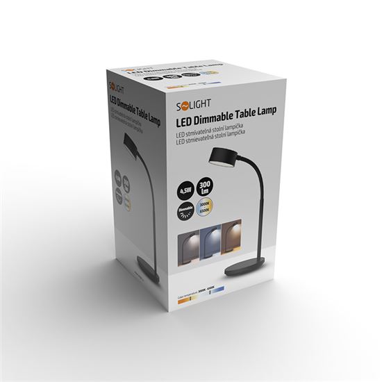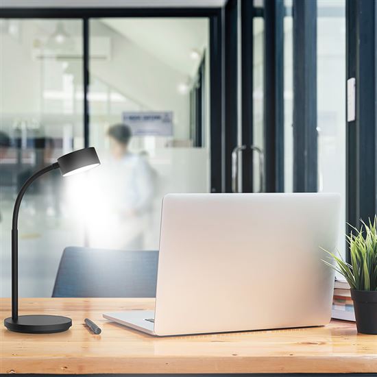 Praktické prevedenie a úsporná prevádzka S maximálnym príkonom 4,5 W a svetelným tokom až 300 lm je lampička energeticky úsporná a zároveň dostatočne výkonná na každodenné použitie. Napájanie zabezpečuje DC 5 V; 2 A cez USB kábel s dĺžkou 150 cm, ktorý je súčasťou balenia (adaptér nie je súčasťou). Kompaktné rozmery cca 350 x 130 x 76 mm a elegantné čierne prevedenie z odolného ABS materiálu umožňujú jednoduché umiestnenie na akýkoľvek stôl. LED zdroj je integrovaný a nemožno ho meniť. Lampička patrí do energetickej triedy G.