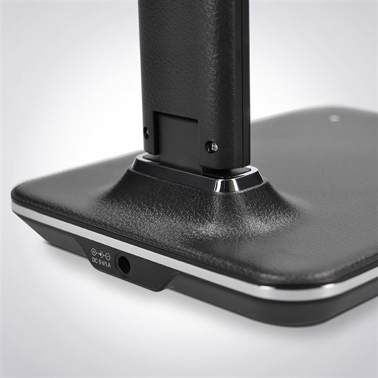 Stolná LED lampička pre moderné pracovné prostredie Táto stolná lampička s LED svetelným zdrojom je ideálnou voľbou pre každého, kto hľadá spojenie štýlového dizajnu a funkčnosti. Povrch v elegantnej čiernej koži dodáva lampičke luxusný vzhľad, ktorý skvele zapadne do modernej kancelárie aj domácej pracovne. Vďaka možnosti výberu z troch farieb svetla – teplá, neutrálna biela a studená biela v rozsahu 3000 K–6000 K – si ľahko prispôsobíte osvetlenie podľa aktuálnej nálady alebo dennej doby. Päťstupňové stmievanie umožňuje nastaviť intenzitu svetla presne podľa vašich potrieb, či už pracujete, študujete alebo relaxujete.