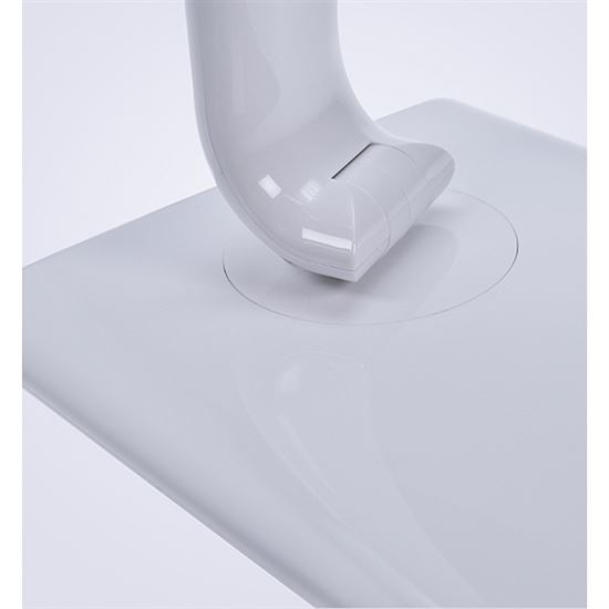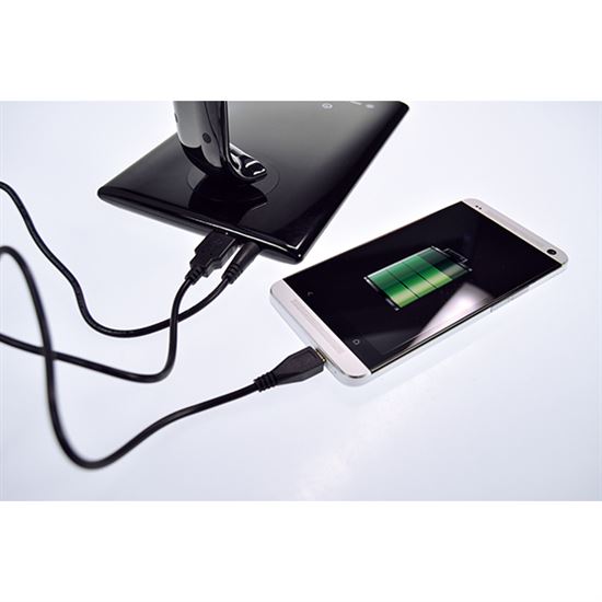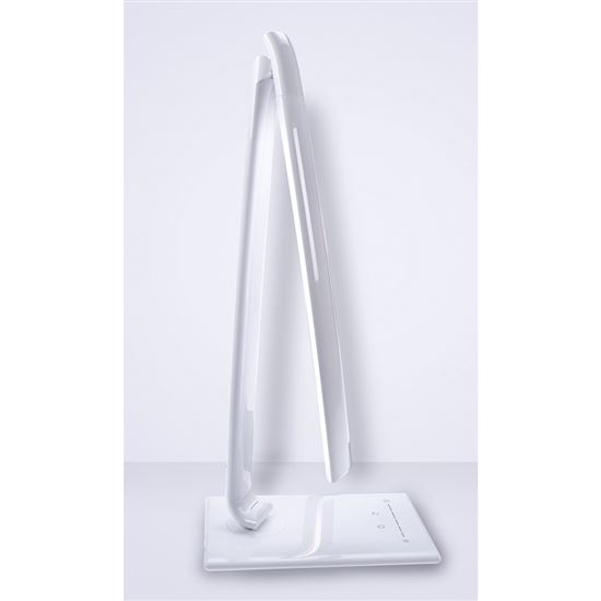 Praktické funkcie a moderný dizajn v bielom lesku Lampička ponúka užitočný svetelný tok až 700 lm v uhle 120°, čo zaručuje dostatočné osvetlenie celej pracovnej plochy. S príkonom max. 12 W je energeticky úsporná a vďaka indexu podania farieb CRI > 80 verne vykresľuje farby. Praktická USB napájacia zdierka (5 V, 1000 mA) umožňuje pohodlné nabíjanie telefónu priamo z lampičky, USB kábel je súčasťou balenia. Napájanie je riešené cez AC 100–240 V, dĺžka napájacieho kábla je 140 cm. Lampička je vyrobená z kvalitného ABS materiálu v elegantnom bielom lesku a jej rozmery sú cca 420 x 360 x 125 mm. LED zdroj nie je možné meniť, energetická trieda G.
