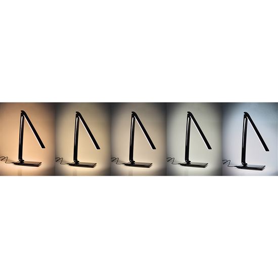 Stolná LED lampička pre pohodlné osvetlenie pracovného stola Moderná stolná lampička s LED svetelným zdrojom je ideálnou voľbou pre osvetlenie pracovného stola doma aj v kancelárii. Vďaka možnosti výberu z piatich farieb svetla – od teplej cez neutrálnu až po studenú bielu (3000 K–6000 K) – si ľahko prispôsobíte atmosféru podľa aktuálnej potreby. Dotykové spínanie umožňuje plynulú reguláciu jasu, takže si vždy nastavíte optimálnu intenzitu svetla. Ohebné rameno, otočná základňa a naklápacia hlava zabezpečujú maximálnu flexibilitu a pohodlie pri používaní. Protišmyková základňa s dotykovým vypínačom prispieva k bezpečnosti a jednoduchému ovládaniu.