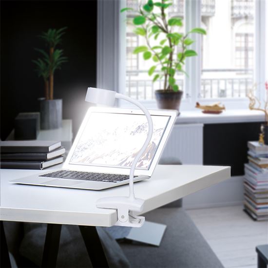 LED stolná lampička s klipom pre flexibilné osvetlenie pracovného priestoru