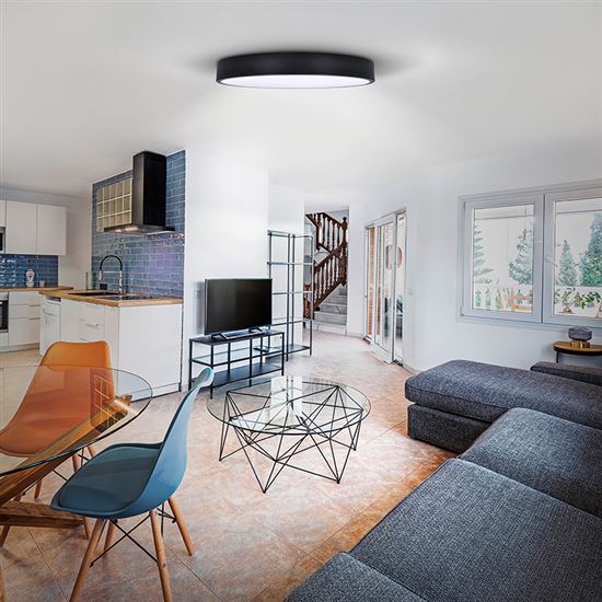 Stropné LED osvetlenie pre variabilnú atmosféru interiéru Moderné stropné LED osvetlenie je ideálnou voľbou pre tých, ktorí hľadajú efektívne a prispôsobiteľné riešenie pre osvetlenie interiéru. Vďaka špeciálnemu LED zdroju s prepínačom je možné jednoducho nastaviť teplotu svetla na 3000 K, 4000 K alebo 6000 K, čo umožňuje voliť medzi teplou, neutrálnou a studenou bielou podľa aktuálnej nálady alebo potrieb priestoru. Svetelný tok dosahuje až 2900 lm pri 3000 K, 2800 lm pri 4000 K a 2700 lm pri 6000 K, čo zaručuje dostatočné osvetlenie aj väčších miestností. Uhol svietenia 120° poskytuje rovnomerné rozloženie svetla po celej ploche miestnosti, zatiaľ čo vysoký index podania farieb Ra >80 garantuje verné zobrazenie farieb.