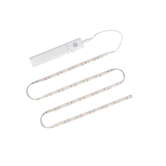 LED pás s pohybovým senzorom pre nočné osvetlenie postele a skríň Tento LED pás s integrovaným pohybovým a svetelným senzorom je ideálnym riešením pre diskrétne a úsporné osvetlenie v domácnosti. Je navrhnutý tak, aby sa automaticky rozsvietil iba pri detekcii pohybu v tme, čo z neho robí perfektnú voľbu napríklad pre podsvietenie postele ako nočné svetielko alebo pre inštaláciu do šatníkov a skríň. Vďaka teplej bielej farbe svetla s chromatickosťou 3000 K vytvára príjemnú atmosféru a zároveň poskytuje dostatok svetla s celkovým svetelným tokom 200 lm. Flexibilný pásik je možné jednoducho prispôsobiť požadovanej dĺžke a vďaka obojstrannej samolepiacej 3M páske je inštalácia rýchla a jednoduchá na akýkoľvek hladký povrch.