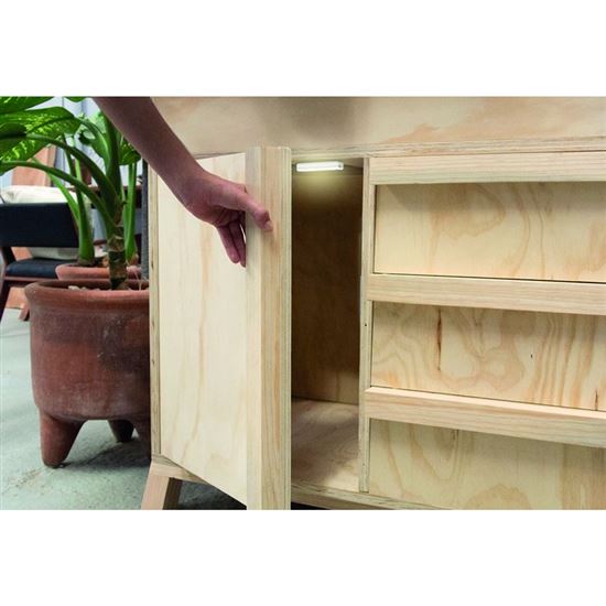 LED svetielko do komôd a zásuviek pre automatické osvetlenie Toto praktické LED svetielko je ideálnym riešením pre osvetlenie vnútorných priestorov komôd, zásuviek alebo skríň. Vďaka automatickému rozsvieteniu pri otvorení zásuvky či dvierok získate okamžitý prehľad o obsahu bez nutnosti hľadať vypínač. Svetielko sa po zatvorení zásuvky ihneď zhasne, čo šetrí energiu a predlžuje životnosť batérií. Neutrálne biele svetlo s teplotou 4000 K a svetelným tokom 40 lm zabezpečí dostatočné osvetlenie bez nepríjemného oslnenia, či už ho použijete v kuchyni, spálni alebo kancelárii.